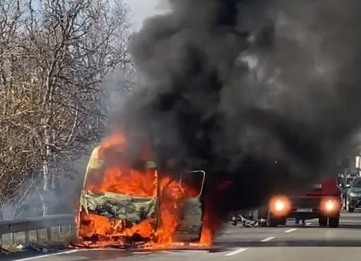 გორის მაგისტრალზე მიკროავტობუსი იწვის (ვიდეო)