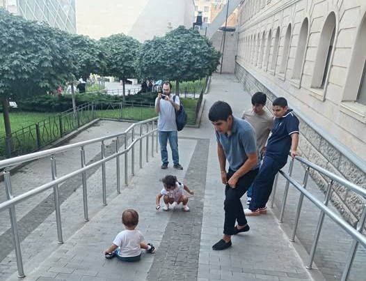 ინსაფ ალიევის ბავშვები სასამართლოს გარეთ თამაშობენ. ზუსტად ამ დროს, ინსაფს 2 წელი მიუსაჯეს.