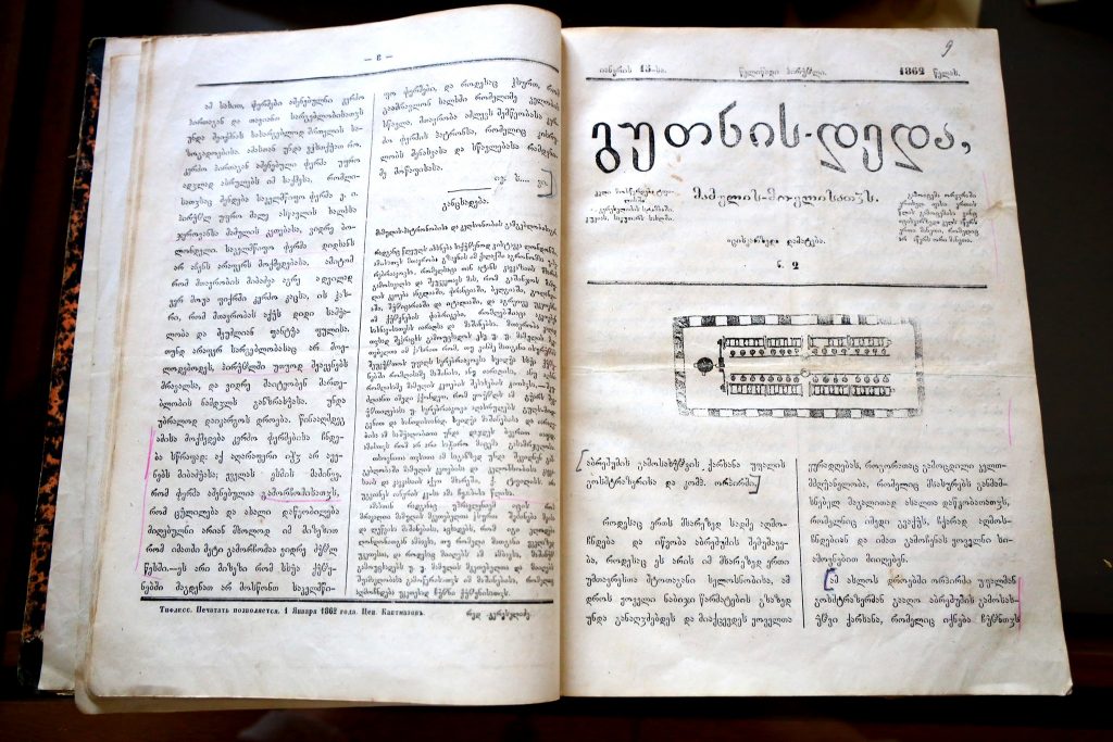 „გუთნის დედა“ საქართველოს ეროვნული ბიბლიოთეკის პრესის მუზეუმში წარმოდგენილი ექსპოზიციის ერთ-ერთი ყველაზე საინტერესო ექსპონატია როგორც შინაარსით, ისე გაფორმების თვალსაზრისით.