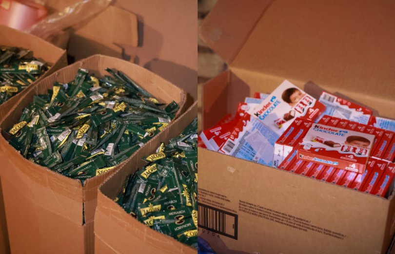 “საგამოძიებო მოქმედებების შედეგად, ამოღებულია სარეალიზაციოდ გამზადებული, 10 000 ერთეულზე მეტი Jacobs Monarch-ის სასაქონლო ნიშნით უკანონო ნიშანდებული ერთჯერადი ყავა და 2 400 ერთეულზე მეტი Raffaello-ს სასაქონლო ნიშნით უკანონო ნიშანდებული ტკბილეული.