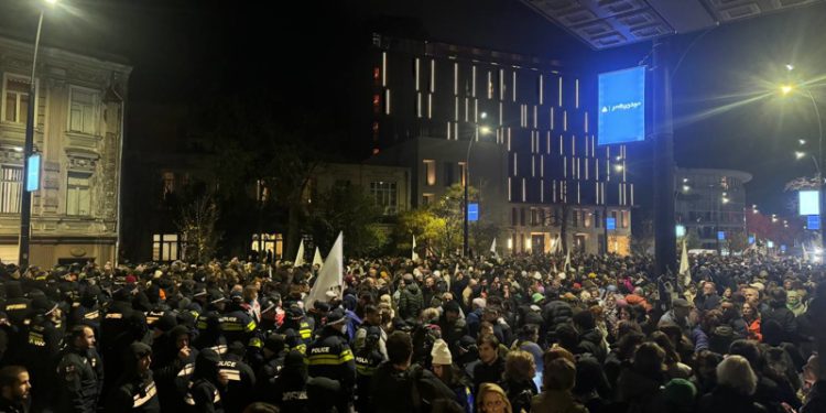 ოპოზიცია, საპროტესტო აქციის მონაწილეებთან ერთად, ისევ თბილისის სახელმწიფო უნივერსიტეტთან დაბრუნდა.