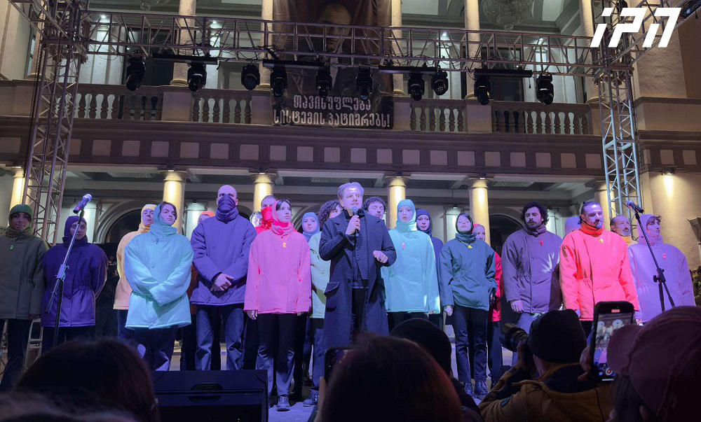 „ეს ადამიანები არიან დაპატიმრებული, სწორედ ამიტომ ვიკრიბებით დღეს ისევ თეატრის წინ, ისევ ამ ეზოში, ისევ ამ ქალაქში, სადაც ამ ადამიანებთან ერთად ქართული კულტურაც დაპატიმრებული ჰყავთ.