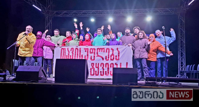 ოზურგეთში „ახალი თეატრის“ მანიფესტი ჩატარდა_ ბათუმის, ზუგდიდის, ქუთაისის შემდეგ „ახალი თეატრის“ დასი გურიას ესტუმრა.