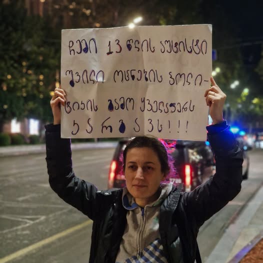 23:42. რუსთაველი. ხალხი თითქმის დაიშალა. პოლიციის კედელი ისევ დგას. დგას ეს გოგოც. მარტოა. ქუჩას უყურებს