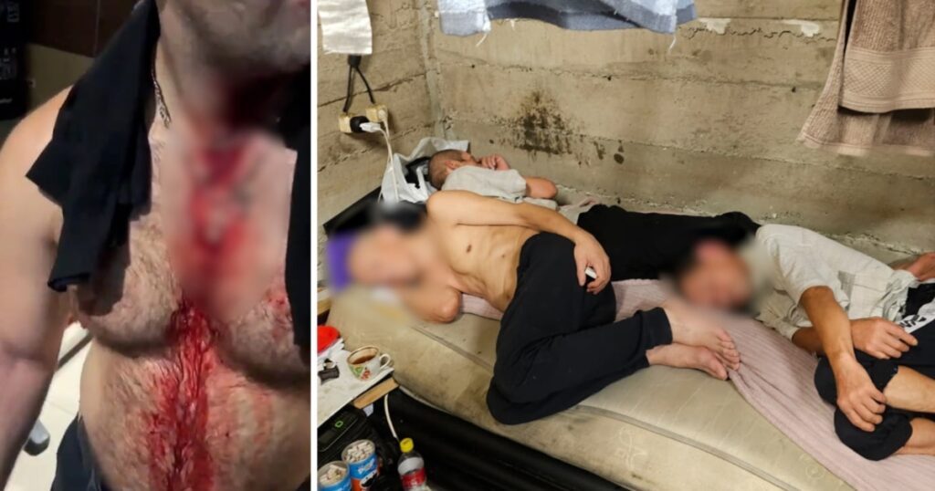 ისინი ამბობენ, რომ სარდაფის ტიპის სივრცეში, სადაც თითქმის ერთი თვეა იმყოფებიან, არაადამიანური პირობებია, დასაწოლი ადგილებიც კი არაა საკმარისი, ხელი არ მიუწვდებათ ნორმალურ საკვებზე, ადგილზე მყოფთა ნაწილს კი ესაჭიროება სამედიცინო დახმარება, კადრში ჩანს მამაკაცი, რომელიც ყავარჯნებით გადაადგილდება.