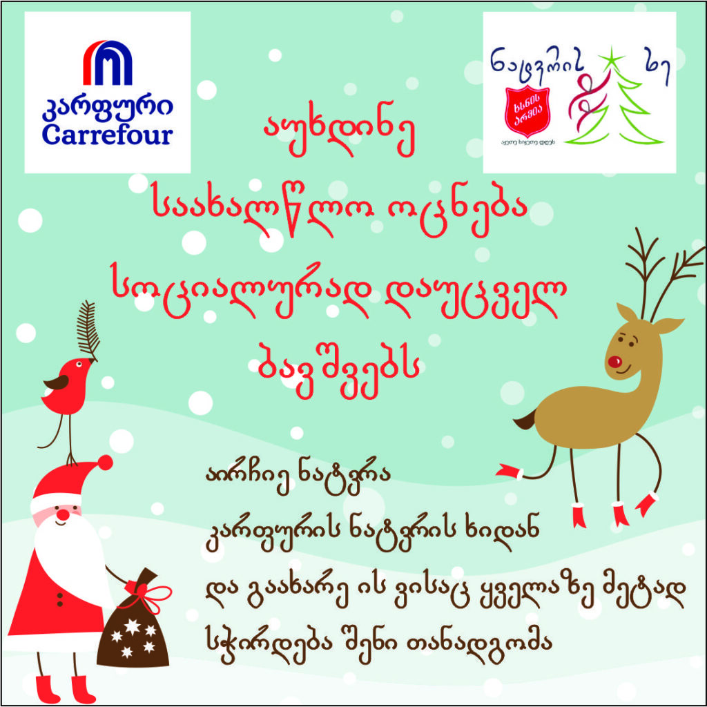 საახალწლო „შოპინგის“ გარდა, კარფური უკვე ტრადიციულად ერთგულ მომხმარებელს ქველმოქმედებაში მონაწილეობის შესაძლებლობასაც სთავაზობს. „აირჩიე ნატვრა კარფურის ნატვრის ხიდან და აუხდინე საახალწლო სურვილი სოციალურად დაუცველ ბავშვებს“ – კარფურის თბილისი მოლის, ისთ ფოინთის, რუსთავისა და ბათუმის ჰიპერმარკეტებში, მომხმარებლებს, ბავშვების ნატვრებით მორთული საახალწლო ნაძვის ხეები დახვდებათ, სურვილის არჩევა და პატარების გახარებაში საკუთარი წვლილის შეტანა ნებისმიერ მსურველს შეუძლია.