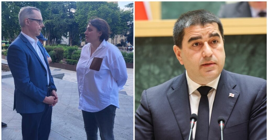 გერმანიის ელჩი საქართველოში, გუშინ, 28 ივნისს მივიდა, რუსთაველის გამზირზე, პარლამენტის წინ, სადაც შიმშილობა აქვთ გამოცხადებული ელენე ხოშტარიასა და გედევან ფოფხაძეს.