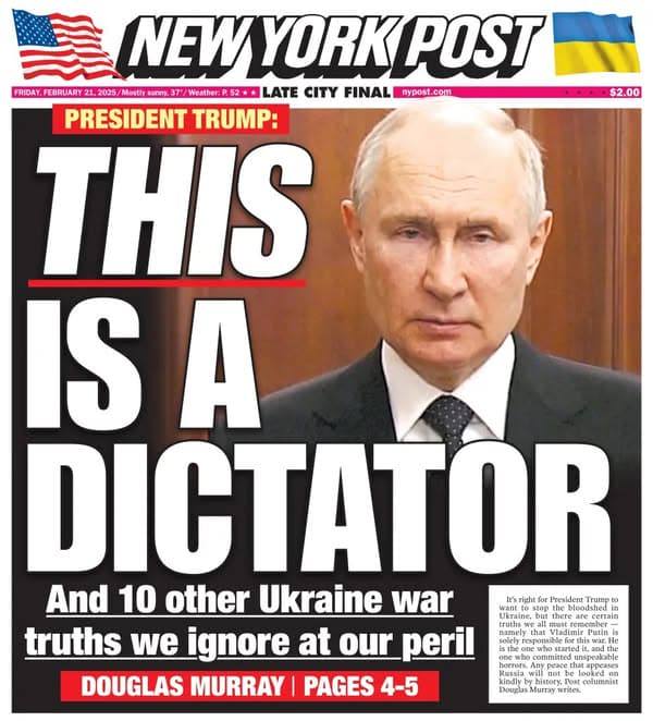 დონალდ ტრამპის საყვარელმა გაზეთმა, New York Post-მა სპეციალურად მისთვის დაწერა სტატია და განათავსა ის პირველივე გვერდზე, რომელიც მოიცავს 10 ფაქტს რუსეთ-უკრაინის ომის საკითხზე
