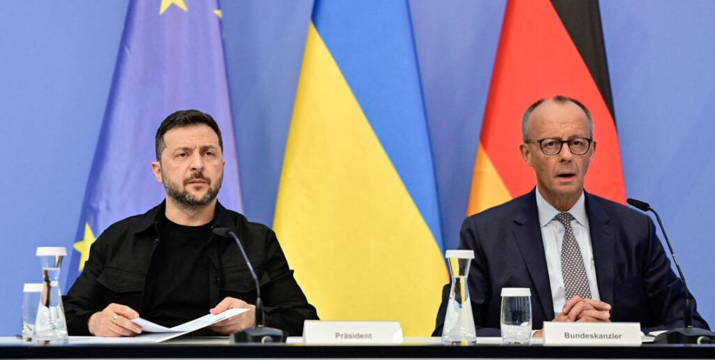 ასევე, მედიაში გავრცელდა უკრაინის პრეზიდენტის, ვოლოდიმირ ზელენსკის და გერმანიის კანცლერის, ფრიდრიხ მერცის ფოტო, რომლებიც დღევანდელ შეხვედრას ესწრებიან. ისინი ერთად სხედან.