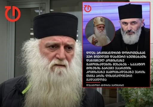 ცნობისთვის, დღეს, დეკანოზმა ანდრია ჯაღმაიძემ სოციალურ ქსელში დაწერა – “12 ოქტომბერს გასულ ინტერვიუში, არქიმანრდიტ დოროთეს გამონათქვამებთან დაკავშირებით მოსალოდნელ კომისიაზე ვისაუბრე.