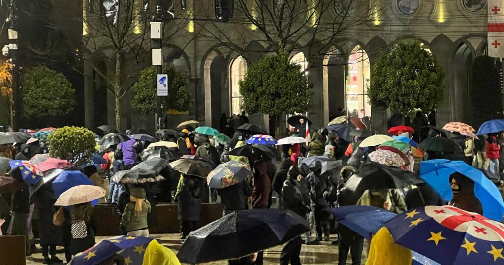 რუსთაველის გამზირზე უწყვეტი პროევროპული პროტესტის მონაწილეებისთვის ეკრანის დადგმა იყო დაგეგმილი, რათა მათ საქართველოსა და სომხეთს შორის ერთა ლიგის პლეიოფის პირველი მატჩის პირდაპირი ტრანსლაცია ენახათ.