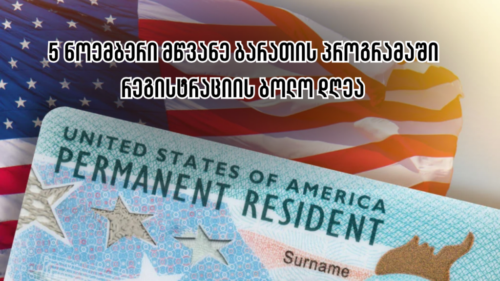 7 ნოემბერს, თბილისის დროით 21:00 საათზე სრულდება რეგიტრაციის ვადა მწვანე ბარათის გათამაშებაში მონაწილეობის მისაღებად. აშშ სულ 55 000 ბარათს გაათამაშებს. შედეგები 2025 წლის მაისში გამოქვეყნდება.