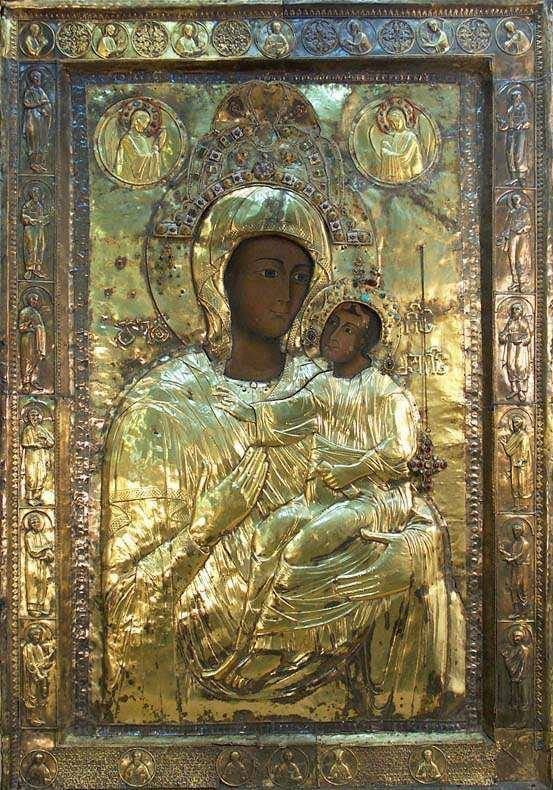ღვთისმშობელი წარმოდგენილია ყრმით, ხატი ფერწერისაა და შეჭედილია ვერცხლით. იგი შემკულია 123 თვალით და მარგალიტით, აქვს ორი წყვილი ოქროს საყურე. აკადემიკოსი გ. ჩუბინიშვილი მას მე-16 საუკუნით ათარიღებს. ხატის ქვედა არშიაზე მედალიონებს შორის შვიდსტრიქონიანი ასომთავრული წარწერაა, რომელიც ქარაგმების გახსნის შემდეგ ასე იკითხება: