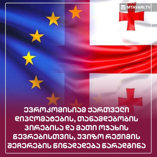 “დღეს, კომისია წარადგენს შეთავაზებას ევროკავშირ-საქართველოს შეთანხმების შეჩერებაზე, ვიზების გამარტივების შესახებ. თუ საბჭო მიიღებს ამ წინადადებას, ქართველ დიპლომატებს, ოფიციალურ პირებსა და მათი ოჯახის წევრებს, რომლებსაც აქვთ დიპლომატიური და სამთავრობო პასპორტები, დასჭირდებათ ვიზა ევროკავშირში 90 დღემდე, ან 180 დღის განმავლობაში ვიზიტისთვის.”  –  ნათქვამია გავრცელებულ ინფორმაციაში.