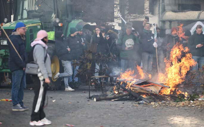 მედიის თანახმად, ევროპარლამენტის წინ ხმაურიანი სცენებიც იყო, სადაც ფერმერებმა საბურავებისა და თივის კოცონი დაანთეს და პოლიციას გარკვეული ნივთები ესროლეს, რომლებმაც საპასუხოდ ცრემლსადენი გაზი გამოიყენეს, მიმდებარე ქუჩები კი შავი კვამლით აივსო.