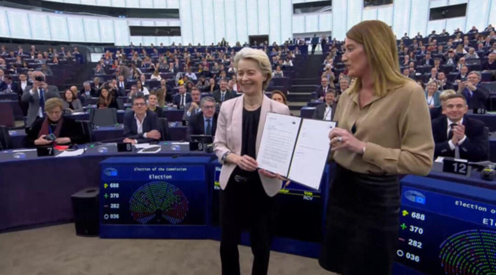 ევროპარლამენტმა ევროკომისიის ახალი შემადგენლობა დაამტკიცა. დღეს, ევროპარლამენტში გამართულ პლენარულ სხდომაზე ევროპარლამენტარებმა ევროკომისიის პრეზიდენტის, ურსულა ფონ დერ ლაიენის 26 კომისრისგან შემდგარი გუნდი დაამტკიცეს.