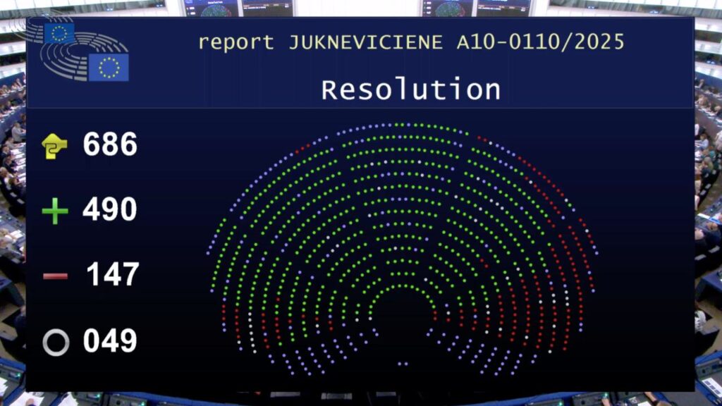 ევროპარლამენტმა 490 ხმით, 147-ის წინააღმდეგ საქართველოს შესახებ კრიტიკული რეზოლუცია მიიღო.