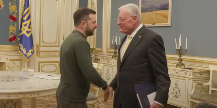რუსეთ-უკრაინის ომის საკითხებში აშშ-ის პრეზიდენტის სპეციალური წარმომადგენელი კიტ კელოგი უკრაინის პრეზიდენტ ვოლოდიმირ ზელენსკის და ქვეყნის ეროვნული უსაფრთხოების გუნდს შეხვდა.