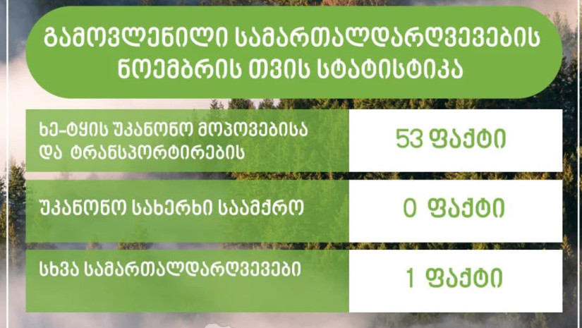 აღსანიშნავია, რომ 2024 წლის იანვრიდან ნოემბრის ჩათვლით, ეროვნული სატყეო სააგენტოს თანამშრომლების მიერ, ჯამში, ქვეყნის მასშტაბით ხე-ტყის უკანონო მოპოვებისა და ტრანსპორტირების 622 ფაქტია გამოვლენილი; „საქმიან ეზოებში“ დასაწყობებული რესურსის მოცულობამ 1197 კუბური მეტრი შეადგინა.