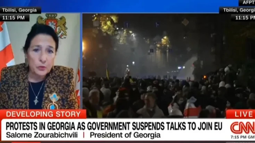 დემონსტრაციები მშვიდობიანია, სადაც ხალხი ახალი არჩევნების ჩატარებას ითხოვს, – ამის შესახებ საქართველოს პრეზიდენტმა, სალომე ზურაბიშვილმა CNN International -თან ინტერვიუში განაცხადა.