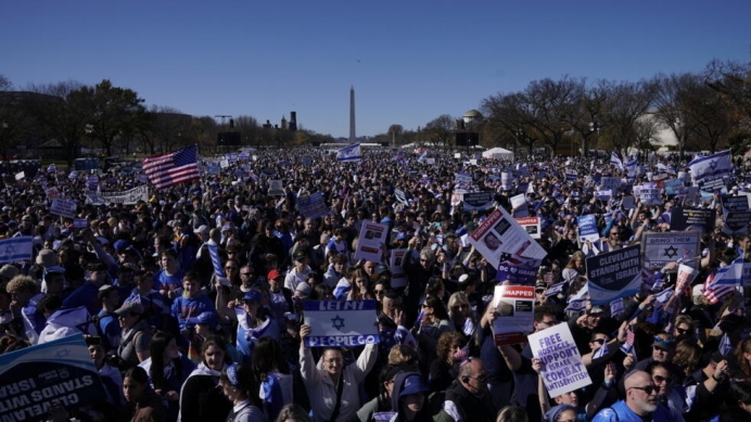აშშ-ის დედაქალაქში, ისრაელისადმი მხარდაჭერისა და ანტისემიტიზმის წინააღმდეგ გამართულ მარშს ათიათასობით ადამიანი შეუერთდა.