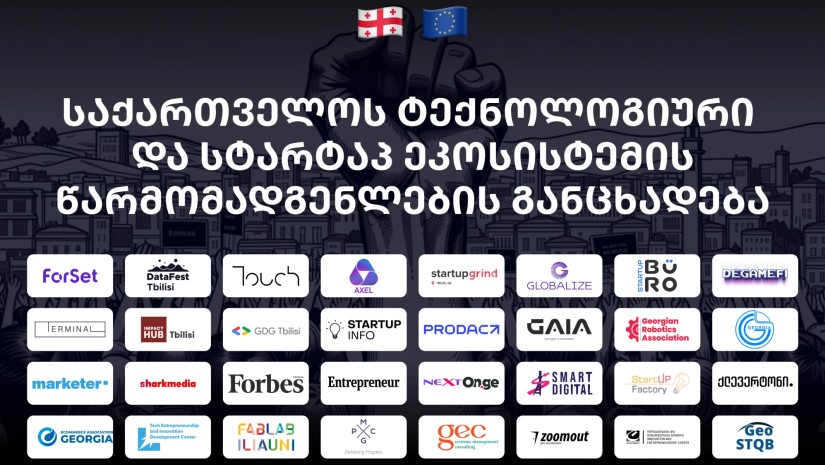 საქართველოს ტექნოლოგიური და სტარტაპ ეკოსისტემის წარმომადგენლების განცხადებას ავრცელებენ, რომელშიც აღნიშნულია, რომ ემიჯნებიან და გმობენ “ქართული ოცნების” ანტიევროპულ ნაბიჯებს და მშვიდობიან მომიტინგეებზე ძალადობას.