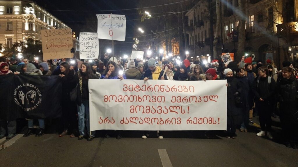 ! “ – სკანდირებენ ისინი. „ვეტერინარები მოვითხოვთ ევროპულ მომავალს! არა ძალადობრივ რეჟიმს“, – წერია მათ მიტანილ ბანერებზე.