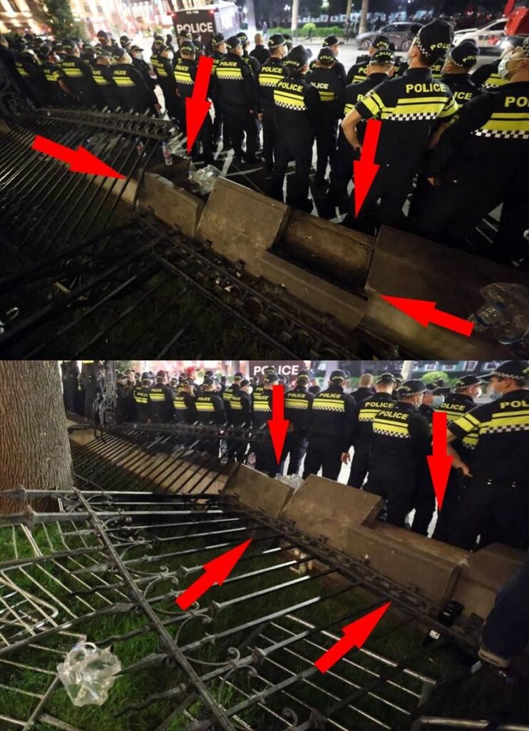 ვთქვათ გამოგყვებით წარმოუდგენელ სიგიჟეში, რომ სუს-მა წინასწარ გადახერხა რკინის ჯებირი, რომ მარტივად გადანგრეულიყო. ამ ფოტოზე, მათ შორის თქვენ ეთერში გასულ კადრზე რას იტყვით, რომ სუს-მა ბეტონი დაალბო წინასწარ, რომ ღობესთან ერთად ისიც მარტივად გადანგრეულიყო?