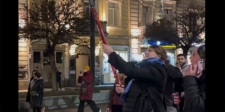 ვიდეო – ელენე ხოშტარია აქციას ფოიერვერკების სროლით შეუერთდა
