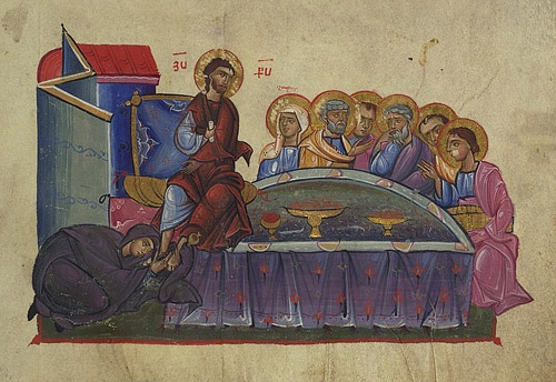 აქვე, დედაკაცის უანგარო საქციელის საპირისპიროდ, იესო ქრისტეს თორმეტთაგან ერთ-ერთი მოწაფის, იუდა ისკარიოტელის უმადურ სულში ჩაისახა ბოროტი აზრი, თავისი მასწავლებელი და უფალი იუდეველთა უკანონო საბჭოსთვის მიეცა. ამიტომ დიდი ოთხშაბათის საეკლესიო მსახურება განადიდებს იმ დედაკაცს, რომელმაც მაცხოვარს ნელსაცხებელი სცხო, იუდას ვერცხლისმოყვარეობას და გამცემლობას კი კიცხავს და გმობს.