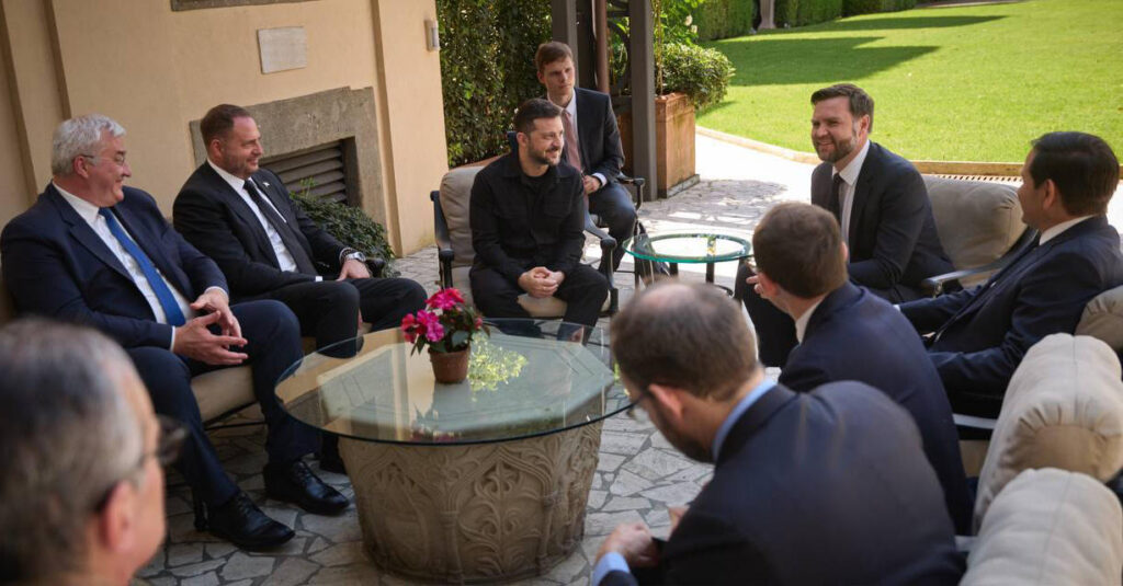 უკრაინის პრეზიდენტი, ვოლოდიმირ ზელენსკი, რომში აშშ-ის ვიცე-პრეზიდენტს ჯეი დი ვენსს და სახელმწიფო მდივანს მარკო რუბიოს შეხვდა.