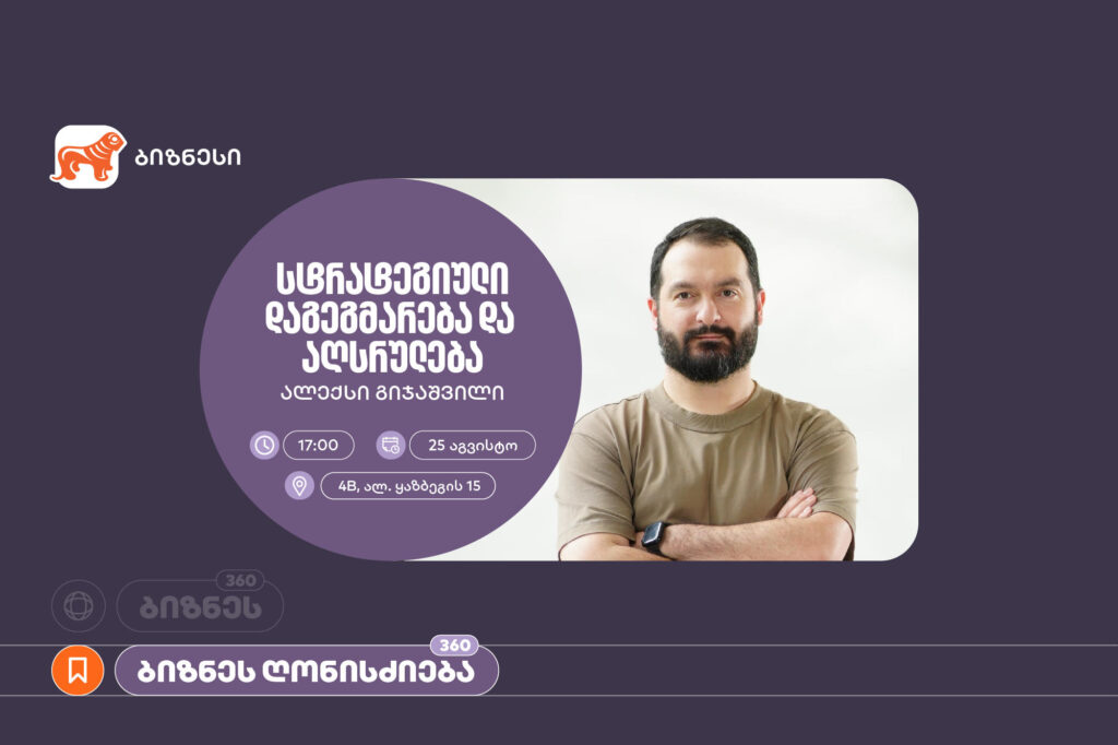 საქართველოს ბანკი, როგორც მცირე და საშუალო ბიზნესის განვითარებაზე ორიენტირებული ინსტიტუტი, საგანმანათლებლო ვორკშოპების ორგანიზებას განაგრძობს. ამჯერად, პლატფორმა ბიზნეს 360˚-ის ფარგლებში, 25 აგვისტოს, 17:00 საათზე, 4B სივრცეში (ალექსანდრე ყაზბეგის N15), ქალი მეწარმეებისთვის ინტერაქციული ვორკშოპი გაიმართება. შეხვედრაზე განხილული იქნება ორგანიზაციის სტრატეგიული მიზნების სწორად დასახვა და მათი ეფექტიანი შესრულება. ვორკშოპს ალექსი გიჯაშვილი, AgileSchool-ის აღმასრულებელი დირექტორი გაუძღვება.