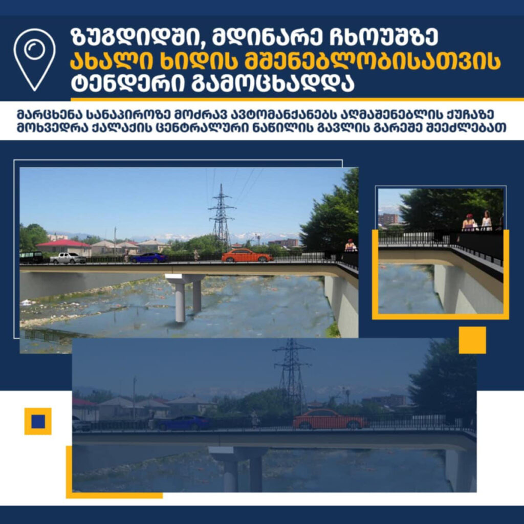 ზუგდიდში, მდინარე ჩხოუშზე ახალი საავტომობილო ხიდი აშენდება, რომელიც წაღვერისა და ჯავახიშვილის ქუჩებს ერთმანეთს დააკავშირებს.