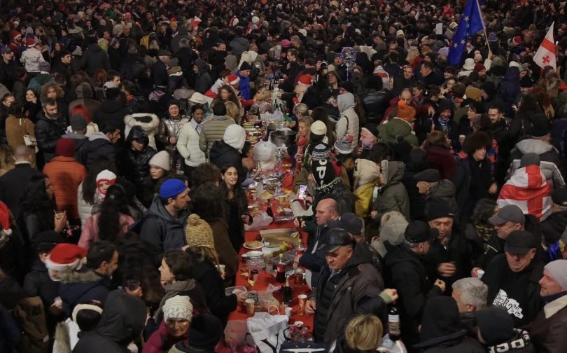 საქართველოში პროტესტის 34-ე ღამე 200 000-ზე მეტი დემონსტრანტისთვის იყო სიხარულის, სოლიდარობისა და იმედის ღამე. ერთად აღვნიშნავთ (ქართულ სტილში კილომეტრზე გრძელი მაგიდის გარშემო) 2025-ს, როგორც არჩევნების წელს. თვითორგანიზებამ ახალ სიმაღლეებს მიაღწია“ — დაწერა პრეზიდენტმა სალომე ზურაბიშვილმა X-ზე და Ezz Gaber-ის ფოტო გამოაქვეყნა.