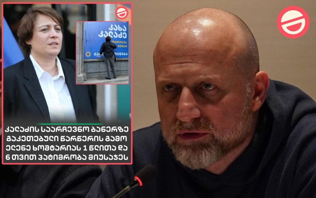 🔴 დღეს კალაძის საარჩევნო ბანერზე გაკეთებული წარწერის გამო ელენე ხოშტარიას 1 წლითა და 6 თვით პატიმრობა მიუსაჯეს.