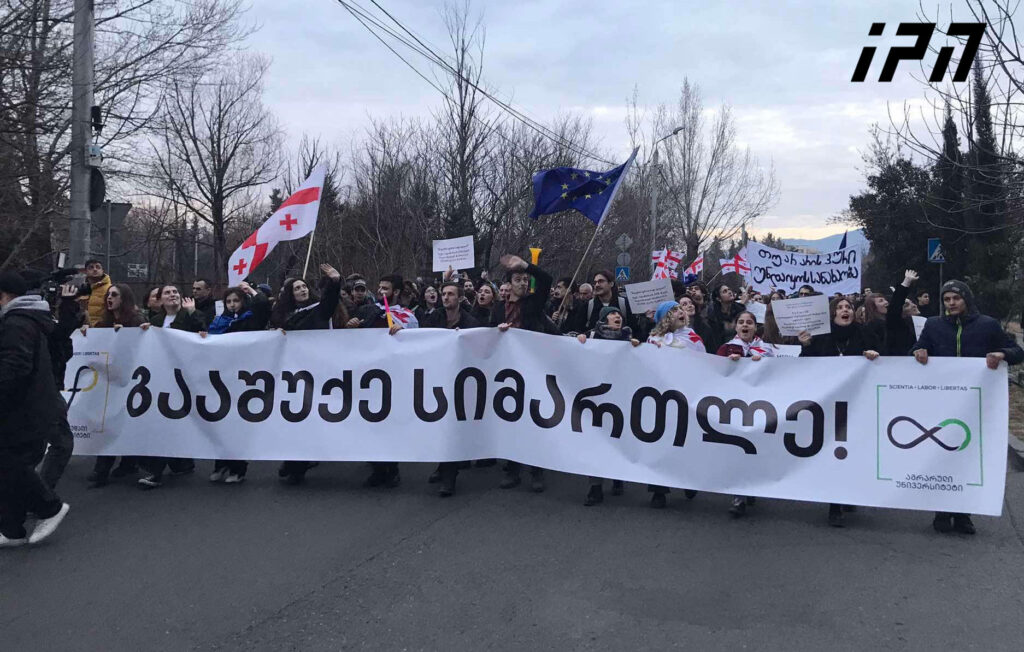 თავისუფალი და აგრარული უნივერსიტეტების სტუდენტებისა და ლექტორების საპროტესტო მარში გრძელდება. ისინი გადაადგილდებიან საქართველოსა და ევროკავშირის დროშებით, ასევე აქვთ სხვადასხვა შინაარსის ბანერები: „თუ არ არის პური, უნდა იყოს სანახაობა“, „გააშუქე სიმართლე“ და ა.შ.