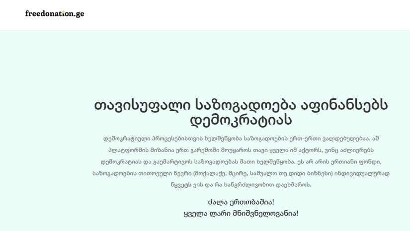 თავისუფალი ბიზნესების პლატფორმა Freebusiness.ge-ის ახალი ფუნქცია დაემატა. კერძოდ, როგორც პლატფორმის დამფუძნებლებმა გადაცემა „ანალიტიკაში” სიახლეების პრეზენტაციისას განაცხადეს, Freebusiness.ge-ის ემატება Freedonation.ge-ის ფუნქცია, რომლის მიზანიც იქნება ერთ სივრცეში მოუყაროს თავი ყველა იმ აქტორს, ვინც აძლიერებს დემოკრატიას და გაუმარტივოს საზოგადოებას მათი ხელშეწყობა.