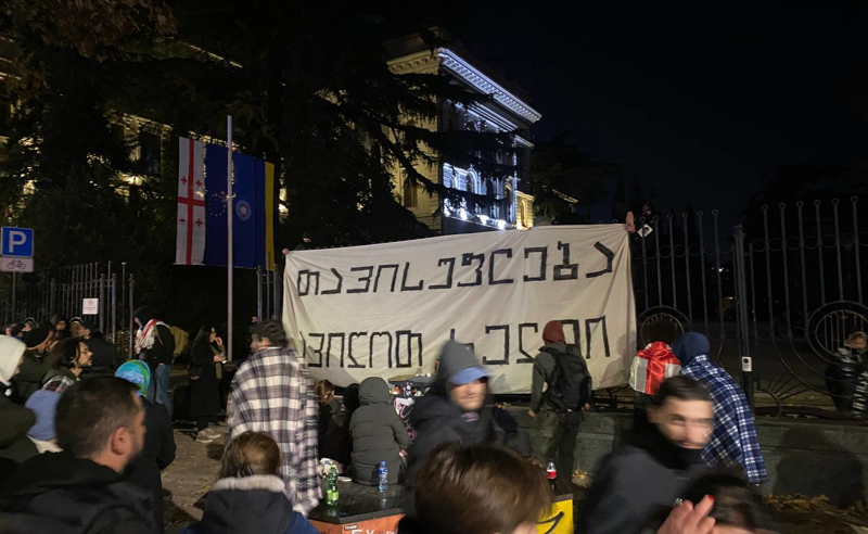 თავისუფლება ავიღოთ ხელში – ამ შინაარსის ბანერი დაკიდეს თბილისის სახელმწიფო უნივერსიტეტის ეზოში სტუდენტებმა. ახალგაზრდების დიდი ნაწილი თსუ-სთან ღამეს ათევს და გაყალბებულ არჩევნებს აპროტესტებს.