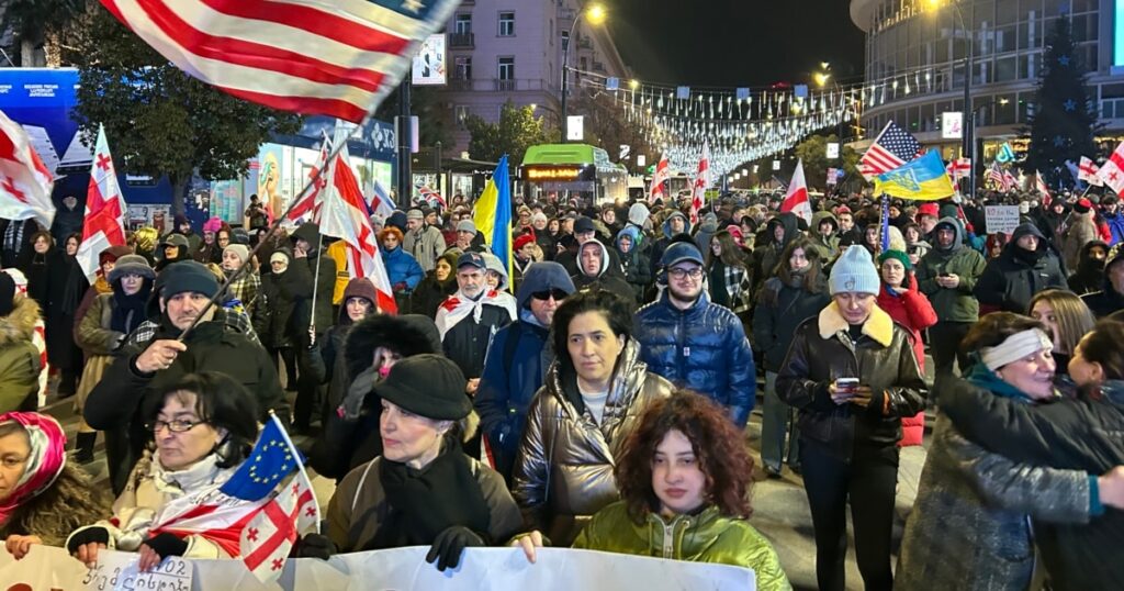 “შაბათი მარშის დღეა” – პროტესტის 402-ე დღე პროევროპული აქციის მონაწილეებმა ტრადიციული მარშით აღნიშნეს. ფილარმონიასთან შეკრებილი ადამიანები რუსთაველის გამზირზე, პარლამენტის შენობისკენ გადაადგილდებიან. ეს არის პირველი შაბათის მარში 2026 წელს.