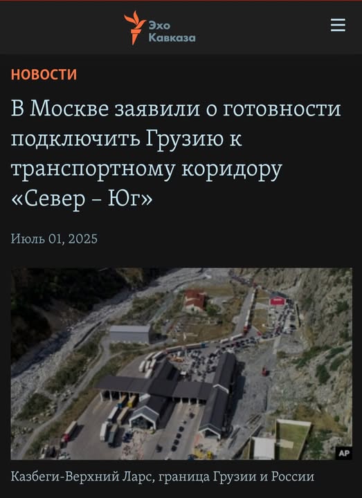 მოსკოვი მზადყოფნას აცხადებს, საქართველო ჩრდილოეთ-სამხრეთის სატრანსპორტო დერეფანს ლარსით დააკავშიროს.