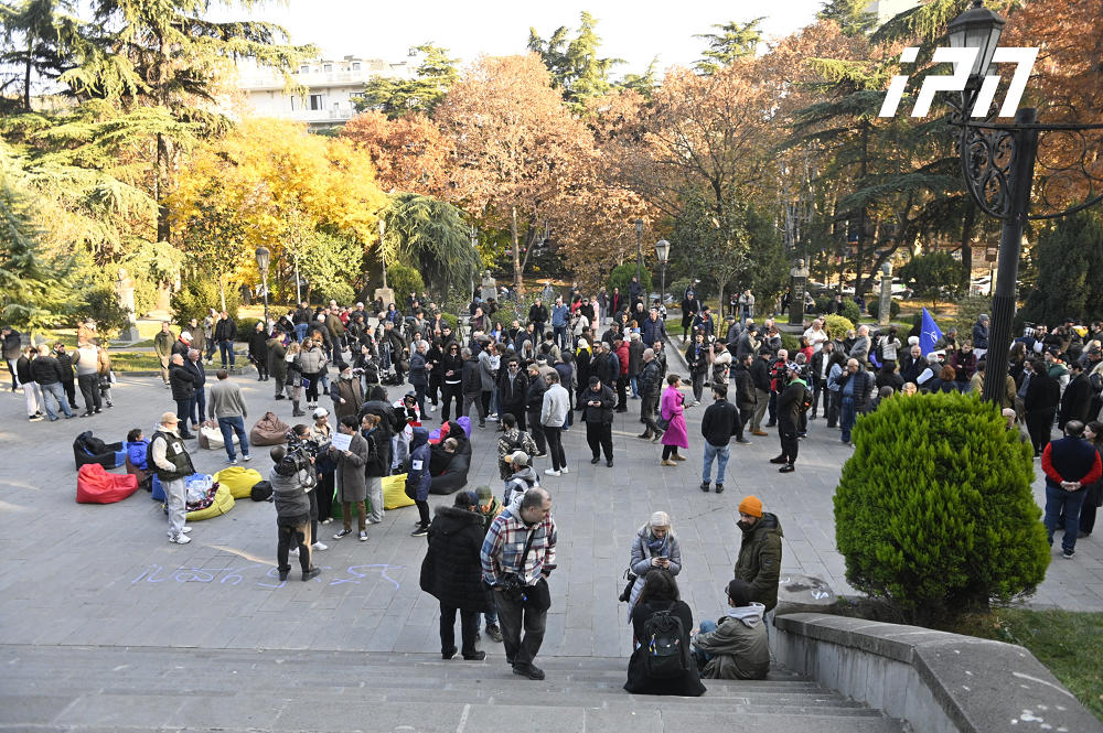 თბილისის სახელმწიფო უნივერსიტეტის 1-ელ კორპუსთან აქციის მონაწილეები იკრიბებიან
