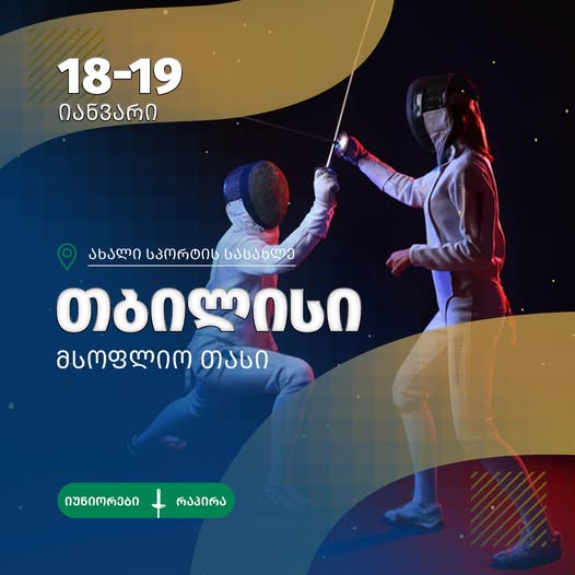 18-19 იანვარს, თბილისი რაპირით მოფარიკავე იუნიორებს შორის მსოფლიო თასს უმასპინძლებს. 29 ქვეყნის 141 სპორტსმენი ჩემპიონის ტიტულისა და საპრიზო ადგილებისთვის იბრძოლებს.