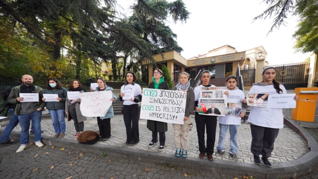 თბილისში, აზერბაიჯანის საელჩოსთან, საპროტესტო აქცია გამართეს აზერბაიჯანელი ჟურნალისტის, აფგან სადიგოვის ცოლმა სევიჩ სადიგოვამ, მათმა შვილებმა და უფლებადამცველებმა. აქციის მონაწილეებს ხელში ეჭირათ პლაკატები წარწერით: “თავისუფლება აზერბაიჯანელ პოლიტპატიმრებს, “თავისუფლება აფგან სადიგოვს”, “ილჰამ ალიევი დიქტატორია”.