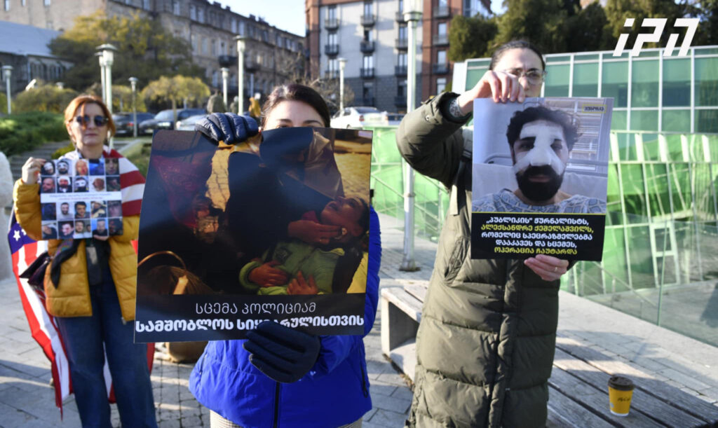 აქციის მონაწილეები პოლიციის მხრიდან მიმდინარე აქციებზე მშვიდობიანი მოქალაქეების მიმართ განხორციელებულ ძალადობას აპროტესტებენ.