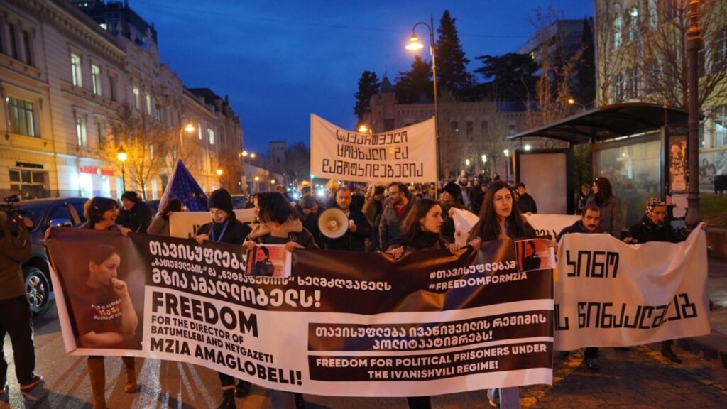 მედიის წარმომადგენლებმა და მზია ამაღლობელის მხარდამჭერებმა აღმაშენებლის გამზირიდან, ჟურნალისტური ეთიკის ქარტიის ოფისიდან დაიწყეს საპროტესტო მსვლელობა და მარჯანიშვილის ქუჩის გავლით რუსთაველის გამზირისკენ დაიძრნენ.
