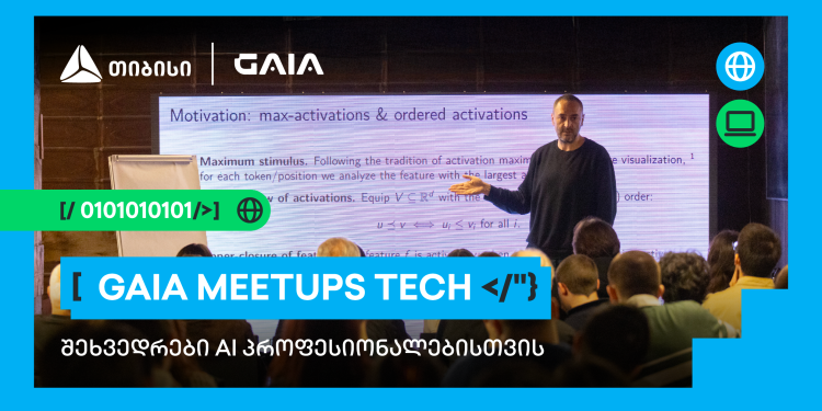 თიბისის მხარდაჭერით, საქართველოს ხელოვნური ინტელექტის ასოციაცია (GAIA), ყოველთვიური შეხვედრების სერიას „GAIA Meetups“ აგრძელებს. 13 ნოემბერს GAIA Meetups Tech-ის მორიგი შეხვედრა ჩატარდა, რომლის სპიკერიც AI მკვლევარი ლევან ცინაძე იყო. მან მონაწილეებს საკუთარი კვლევის შედეგები გაუზიარა. კვლევა ენის მოდელების (LLMs) ახსნადობას (Explainability) და ინტერპრეტირებადობას (Interpretability) შეეხება და კომპლექსურ მათემატიკურ საკითხებს მოიცავს. პრეზენტაციის გარდა, შეხვედრის მონაწილეებს ნეთვორქინგის და იდეების, სიახლეებისა და გამოცდილების გაცვლის შესაძლებლობაც ჰქონდათ.