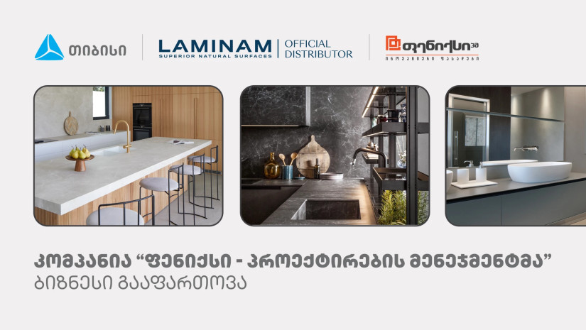 „ფენიქსი – პროექტირების მენეჯმენტი“ უკვე მრავალი წელია ოპერირებს არამხოლოდ ქართულ, არამედ რეგიონულ ბაზარზე. კომპანია იტალიური პრემიუმ ბრენდის Laminam-ის ექსკლუზიური წარმომადგენელია საქართველოში, რომელიც თავის მხრივ აწარმოებს დიდი ფორმატის კერამიკულ ზედაპირებს. კომპანია უზრუნველყოფს შენობის როგორც ექსტერიერის, ისე ინტერიერის მოპირკეთებას, კერძოდ, ინტერიერში სამზარეულოს ზედაპირების, ნიჟარების დაფების, ბუხრის და სხვა ზედაპირების მოწყობას.