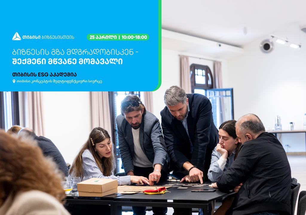 25 აპრილს, თიბისი კონცეპტის მულტიფუნქციურ სივრცეში, ბიზნესსექტორის წარმომადგენლებს შესაძლებლობა ექნებათ, დაესწრონ სპეციალურად მათ საჭიროებებზე მორგებულ ტრენინგს – „ბიზნესის გზა მდგრადობისკენ – შექმენი მწვანე მომავალი“.
