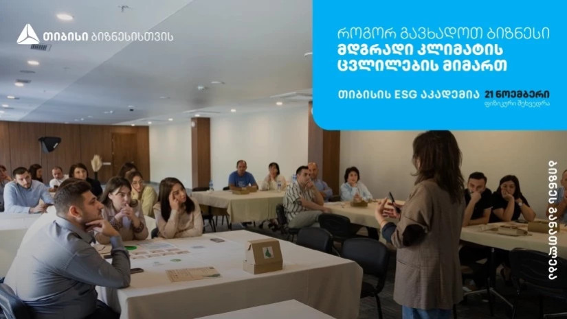 21 ნოემბერს, თელავში, ბიზნესსექტორის წარმომადგენლებს პირველად ექნებათ შესაძლებლობა, დაესწრონ ს ESG აკადემიის ტრენინგს – „ ბიზნესის გზა მდგრადობისკენ – შექმენი მწვანე მომავალი“.