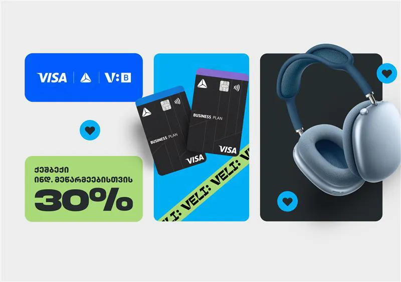 თიბისის, ვიზას და VELI ბიზნესის ერთობლივი ინიციატივით, ინდივიდუალურ მეწარმეებს, მათ შორის თვითდასაქმებულებს და ფრილანსერებს, შესაძლებლობა აქვთ, ველი ბიზნესის ონლაინ პლატფორმაზე მათ საჭიროებებზე მორგებული პროდუქტი შეიძინონ და ღირებულების 30%, მაქსიმუმ 200 ლარი დაიბრუნონ.